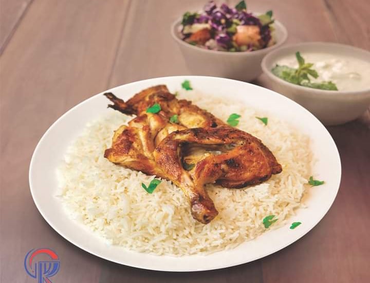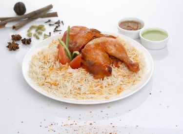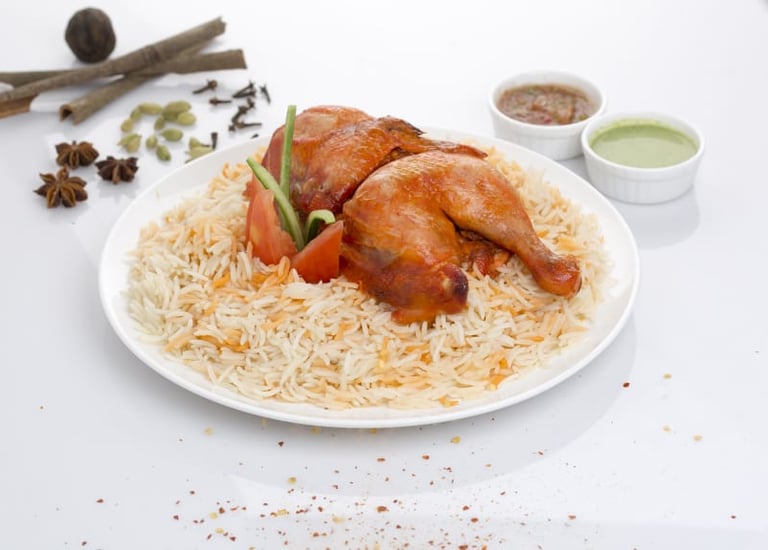 نصف دجاج برياني مع الأرز مع صوص طماطم حار